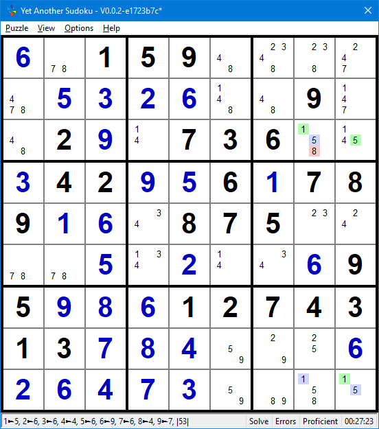 As 6r1c6 may be True and can’t be False. And 6r1c6 can only assume a value of True or False, 6r1c6 must be True: r1c6:= 6.